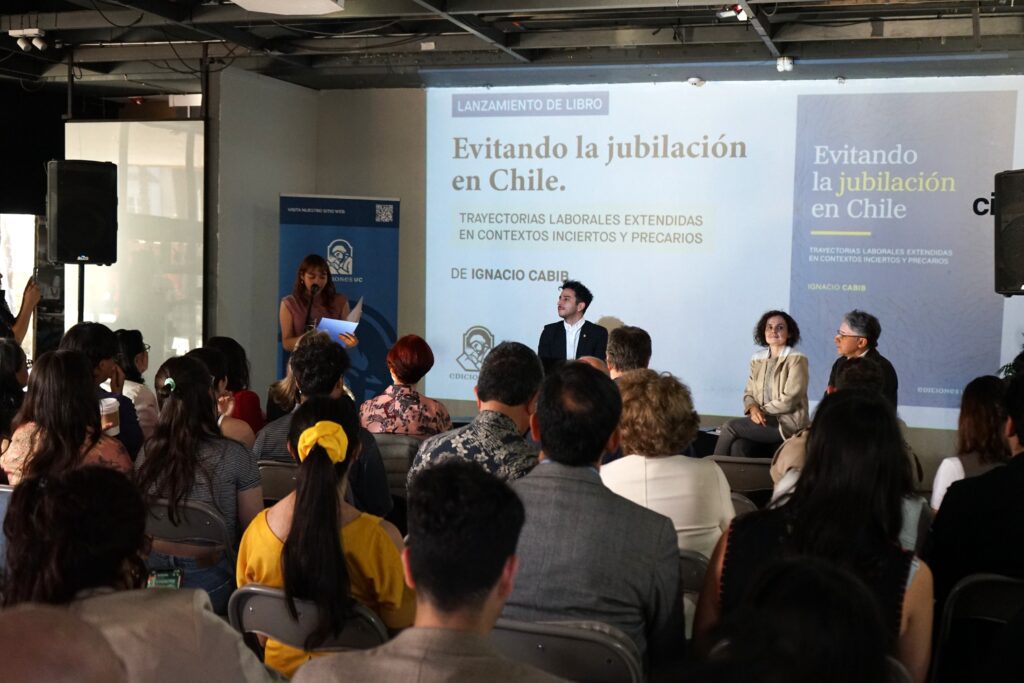 En un multitudinario evento en el CityLab del Centro Cultural Gabriela Mistral, este viernes 3 de octubre el profesor asociado del Instituto de Sociología y de la Escuela de Salud Pública UC e investigador del Centro de Estudios de Vejez y Envejecimiento (CEVE) y Centro de Conflicto y Cohesión Social (COES), Ignacio Cabib, presentó su libro Evitando la Jubilación: Trayectorias Laborales Extendidas en contextos inciertos y precarios editado por Ediciones UC.